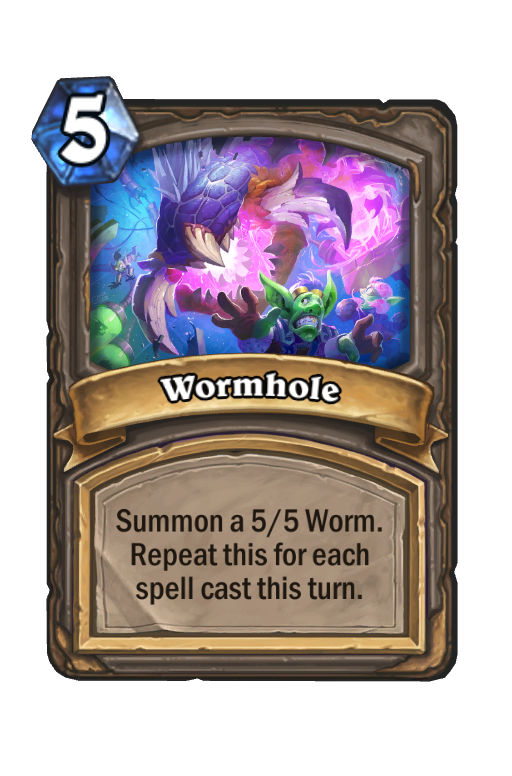 Summon a 5/5 Worm. Repeat this for each spell cast this turn.