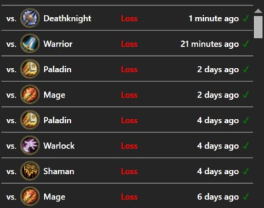 Ezt a Dragon Warrior deck-et amúgy élvezem játszani (remélem nem szedik szét nerf-ekkel mert akkor jó sokáig tudom tolni (mivel a tavaszi rotáció 1 kártya párt érint csak belőle)). Nem olyan tiszta mint az előző Aggro DH deck, de sajna muszáj összepiszkolnom a kezem mivel discover bullshit-ek nélkül nincs sok esélyem a mai mezőnyben...