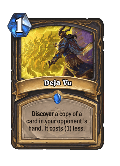Timeless Causality: 2 Mana, 3/2, Epic, Elemental. Battlecry: Megfordítja a paklid sorrendjét.
