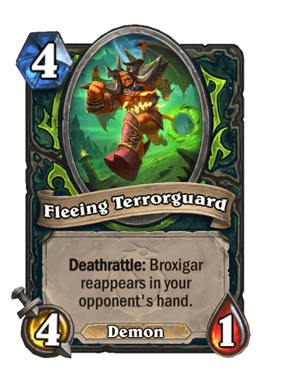 - Fleeing Terrorguard: 1 Mana, 4/1, Demon. Deathrattle: Az ellenfeled* húz egy lapot. Belekeveri a Second Portal to Argus-t a paklidba.