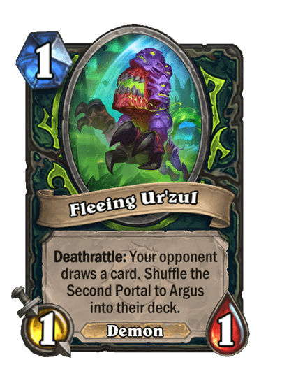 - Fleeing Ur'zul: 1 Mana, 1/1, Demon. Deathrattle: Az ellenfeled* húz egy lapot. Belekeveri a Second Portal to Argus-t a paklidba.