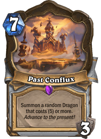 Conflux Crasher: 7 Mana, 7/7, Epic, Dragon. Rewind. Battlecry: 7-et sebez egy véletlenszerűen kiválasztott ellenségnek.