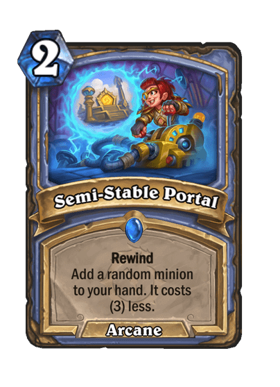Bygone Doomspeaker: 3 Mana, 3/3, Epic. Rewind. Battlecry: Mindkét játékos eldob egy véletlenszerűen kiválasztott lapot.