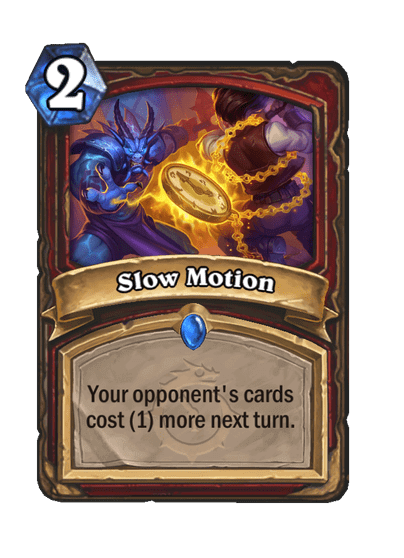 Slow Motion: 2 Mana, Rare, Spell. Az ellenfeled kártyái 1-gyel többe kerülnek a következő körben.