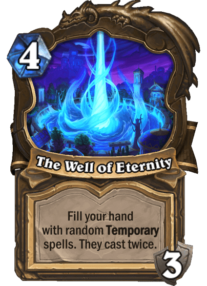 - The Well of Eternity: 4 Mana, 3 Armor, Helyszín. Telerakja a kezedet véletlenszerűen kiválasztott ideiglenes spellekkel.