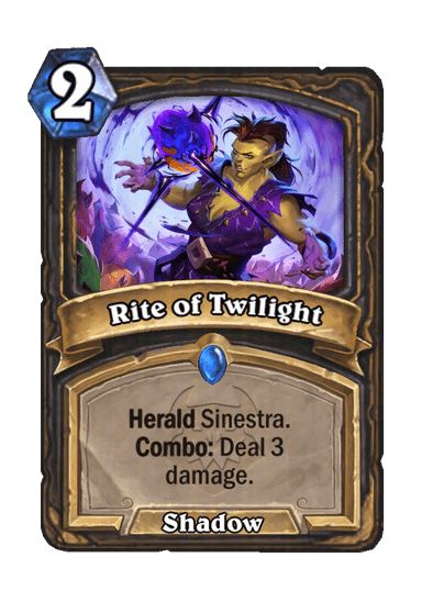 Rite of Twilight: 2 Mana, Rare, Shadow, Spell. Herald-olja Sinestrat. Combo: 3-at sebez.