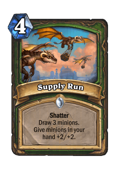 Carrier Whelp: 1 Mana, 1/2, Common, Dragon. Battlecry: Kapsz egy véletlenszerűen kiválasztott Dragont, ami 3-ba, vagy annál kevesebbe kerül.