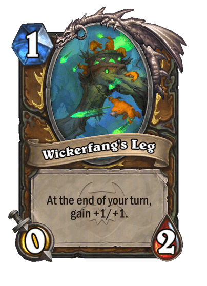 - Wickerfang's Leg: 1 Mana, 0/2. A köröd végén +1/+1-et kap.