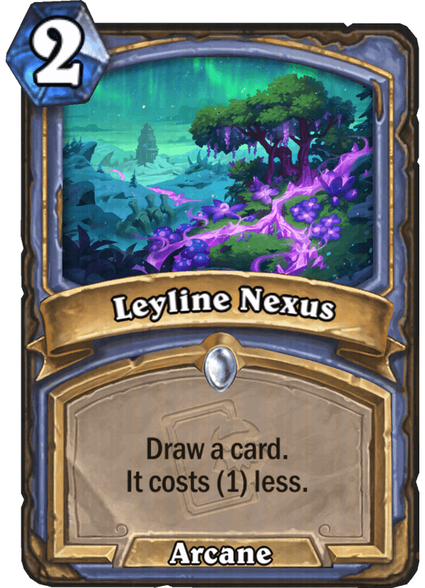 Leyline Nexus: 2 Mana, Common, Arcane, Spell. Húzol egy lapot. Az 1-gyel kevesebbe kerül.