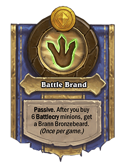 - After you buy 6 Battlecry minions, get Brann Bronzebeard. (Once per game.)