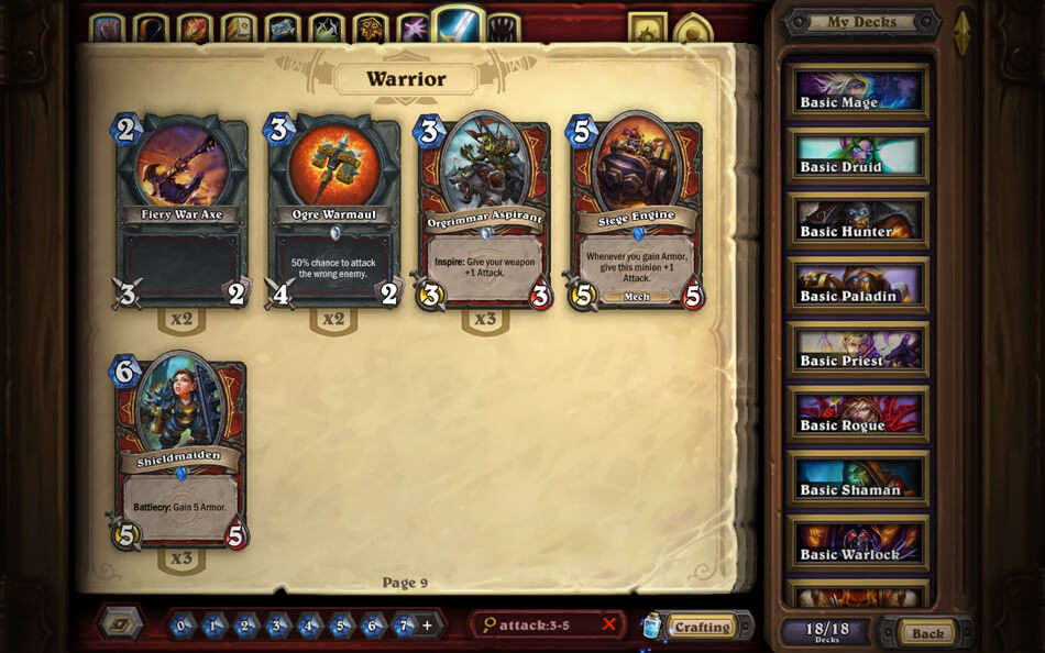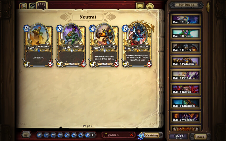 Kombinálhatod is ezeket a kereséseket. Ha az összes 3 Támadású és 3 Életű lényeket szeretnéd megkeresni, akkor az attack:3 health:3 keresési kombinációra lesz szükséged. Ha meg szeretnéd csodálni az epikus aranylapjaidat, akkor a golden epic kulcsszót használd. Vagy használd az extra rare keresést, ha azokat a Rare kártyáidat szeretnéd megjeleníteni, amiből több van a gyűjteményedben, mint 2.