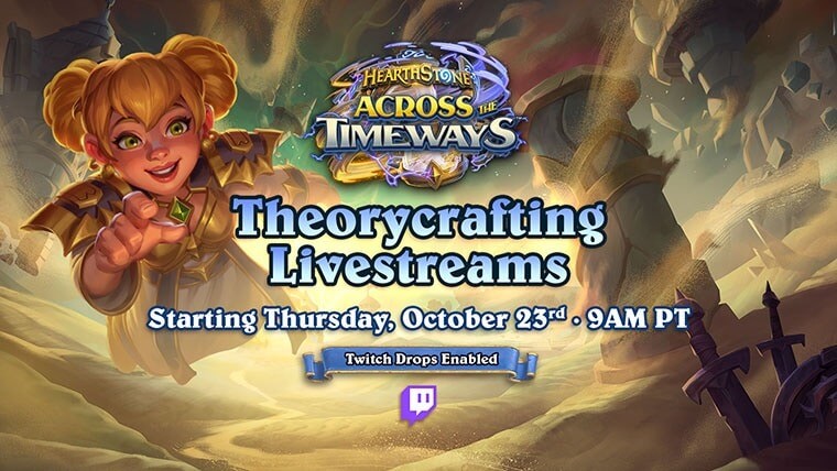Twitch Dropok is járnak a streamek alatt! Legfeljebb 2 Across the Timeways kártyacsomagot lehet szerezni, ha valamelyik Hearthstone streamet nézitek (és összekötöttétek a fiókotokat a Twitch-csel). Továbbá a streamerek Mega Bundle kódokat is fognak ajándékozni, így érdemes lesz aktívnak lenni a chaten.