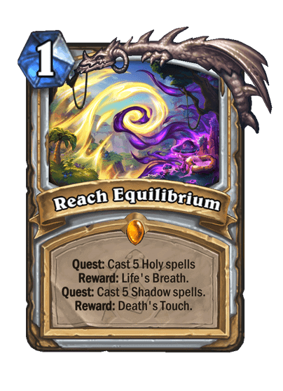 - Reach Equilibrium: 1 Mana, Legendary, Spell. Quest: Használj el 5 Holy spellt. Jutalom: Life's Breath. Quest: Használj el 5 Shadow spellt. Jutalom: Death's Touch.
