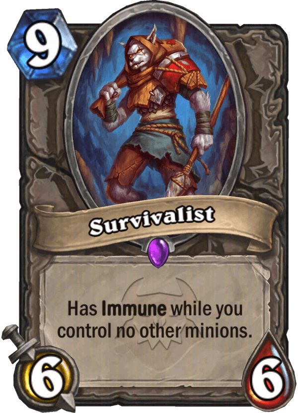- Survivalist: 9 Mana, 6/6, Epic. Immunis, amíg nincsen más lényed a harctéren.