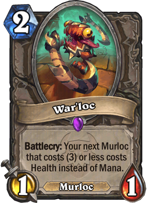 - War'loc: 2 Mana, 1/1, Epic, Murloc. Battlecry: A következő Murloc-od, ami 3-ba, vagy annál kevesebbe kerül Élet helyett Manába kerül.