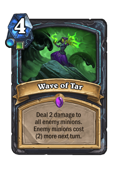 - Wave of Tar: 4 Mana, 1 Frost, 1 Unholy, Epic, Spell. 2-t sebez az összes ellenséges lénynek. Az ellenséges lények 2-vel többe kerülnek a következő körben.