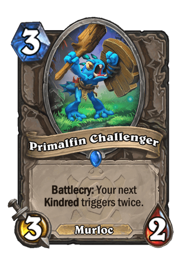 - Primalfin Challenger: 3 Mana, 3/2, Rare, Murloc. Battlecry: A következő Kindred-ed kétszer aktiválódik.