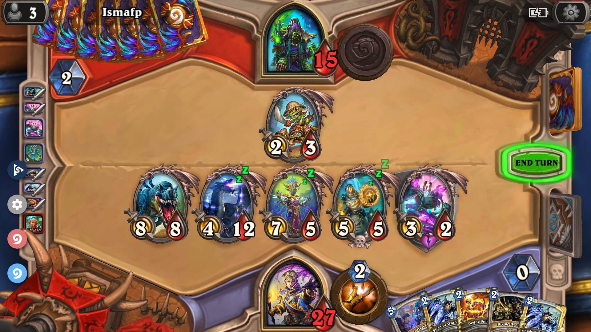 Sámán ellenfelem kijátszotta Krag'wa, the Frog-ot én meg le másoltam Seance-al. Végeredményében minden további köröm Kragwa volt, amit lemásoltam a szeánszal :)