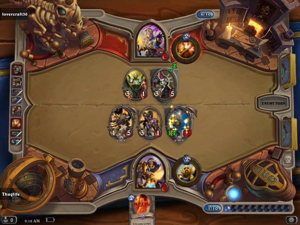 14/14-es tirion mellé bloodhoof ellenfél a clericcel és shieldmastával. Márcsak az lett volna epikusabb ha a laphúzásban pont a T. B. Knight jön. 6 életre vitt le... Csúnyán kikapott.